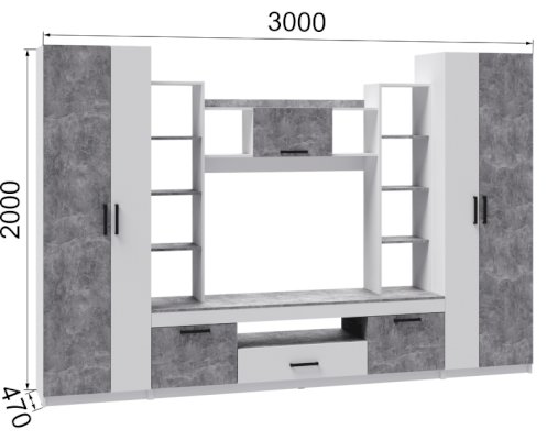 Ниша под ТВ (ШхВхГ): 1100х850х470 мм