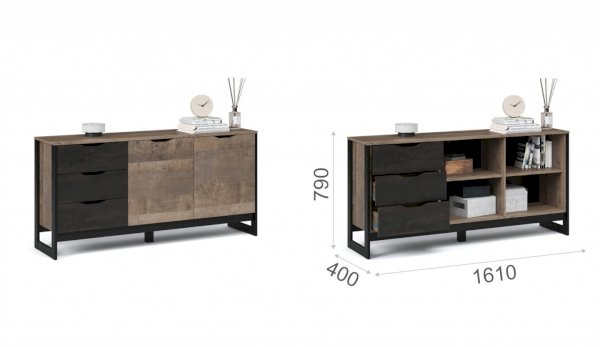 • Оригинальные опоры на торцах боковых стенок в стиле лофт