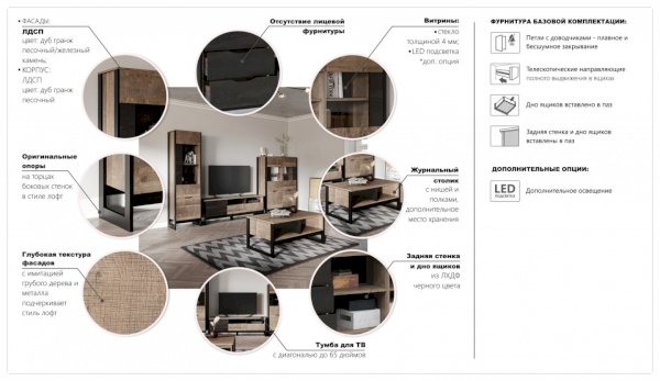 Модульная гостиная Стокгольм Дуб гранж песочный/Железный камень (Империал) - за 44 840 руб. в Вологде. Купите на сайте vologda.onlinemarketmebeli.ru или по телефону 8(800)505-30-63 уже сегодня! Уточнить наличие, комплектацию, актуальную цену можно бесплатно у менеджера ежедневно. Закажите Модульная гостиная Стокгольм Дуб гранж песочный/Железный камень (Империал) до конца акции! Доступна покупка в кредит, рассрочку. Доставим со склада или на заказ.