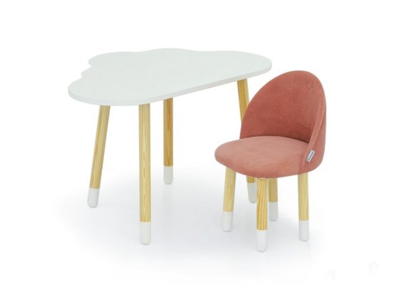 Ножки выполнены из массива сосны, тщательно отшлифованы и покрыты лаком на водной основе. Низ ножек украшают белые “носочки”, покрашенные эмалью на водной основе. Все используемые при производстве материалы полностью экологичны и безопасны.