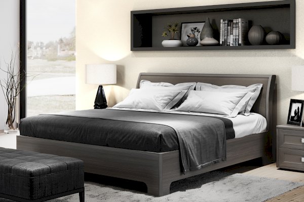 Кровать в современном стиле доступна к покупке в двух цветофактурных исполнениях: «лиственница темная» + экокожа «дила», «ясень анкор светлый» + экокожа «polo белая». Оба исполнения находятся на пике популярности и непременно украсят ваш интерьер.