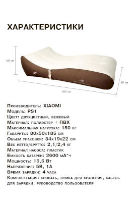 Надувная кровать для отдыха PS 1 (Xiaomi) - за 10 023 руб. в Вологде. Купите на сайте vologda.onlinemarketmebeli.ru или по телефону 8(800)505-30-63 уже сегодня! Уточнить наличие, комплектацию, актуальную цену можно бесплатно у менеджера ежедневно. Закажите Надувная кровать для отдыха PS 1 (Xiaomi) до конца акции! Доступна покупка в кредит, рассрочку. Доставим со склада или на заказ.
