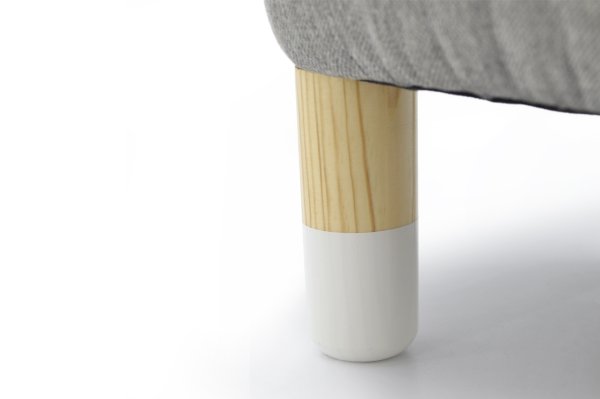 Ножки выполнены из массива сосны, тщательно отшлифованы и покрыты лаком на водной основе. Низ ножек украшают белые “носочки”, покрашенные эмалью на водной основе. Все используемые при производстве материалы полностью экологичны и безопасны.