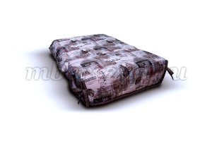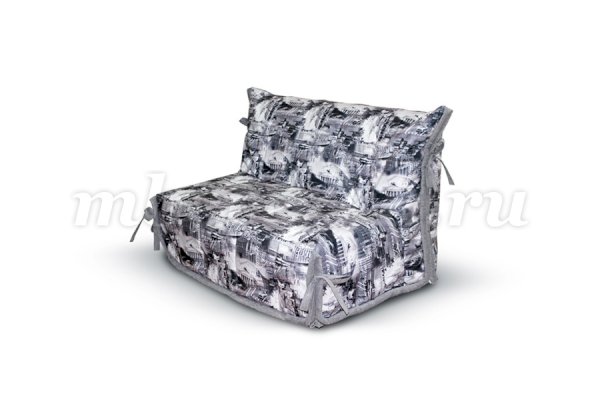 Недорогой малогабаритный диван. Чехол в светлых оттенках, с завязками контрастного цвета. Его можно использовать в качестве покрывала для кровати, в которую миниатюрный диван превращается в разложенном виде. По мере загрязнения чехол можно стирать – он выполнен из тканей, устойчивых к механическим воздействиям и выцветанию, и долгие годы не потеряет свежести внешнего вида.