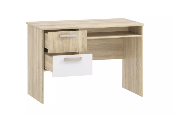 Стол для компьютера НМ 009.19-05 М2 поможет обустроить комфортный учебный уголок в детской. На рабочей поверхности модуля достаточно места для размещения стационарного компьютера, ноутбука.Удобная выдвижная полка для клавиатуры позволит сохранить место на рабочем столе. Закругленные углы столешницы делают эксплуатацию модуля безопасной для ребенка и взрослого. По окончании занятий ребенок сможет убрать книги и тетради в выдвижные ящики для поддержания порядка на рабочем месте.
