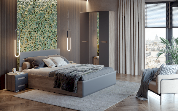 Стильная кровать Наоми – это прекрасный выбор для спальни. Выполненная из ЛДСП и МДФ в комбинации двух цветов, она будет отлично смотреться в интерьере любого стиля. Модель двуспальной кровати всегда можно дополнить модулями из одноименной коллекции мебели и создать законченный образ спальни.