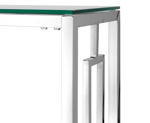 Столешница выполнена из прозрачного закаленного стекла, которое обладает повышенной прочностью и стойкостью к перепадам температур, способно выдерживать большие нагрузки.