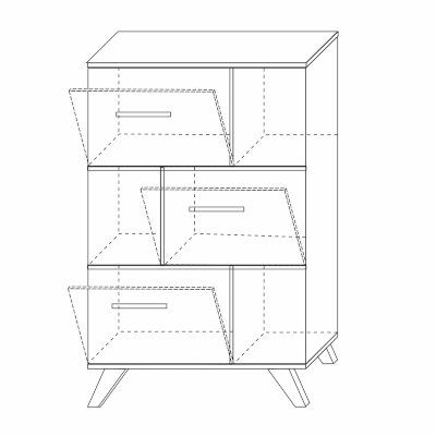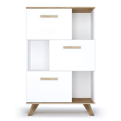 Низкий шкаф с нишами — это практичное решение для гостиной или спальни. Его конструкция — своего рода шкаф-стеллаж, который предназначен для хранения вещей, книг и посуды как в открытом, так и в закрытом виде.