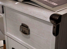 Оригинальный дизайн фасада, точно повторяющий текстуру отполированного дерева отлично впишется в современный интерьер. Дополняет общую композицию необыкновенная форма ручек и закругленные металлические края элементов мебели. В коллекцию Indiana входит большой ассортимент элементов мебели, который поможет создать интересный интерьер в комнате.