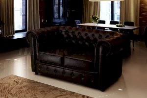 Диван «Честер» раскладной представлен в традиционном коричневом и белом цвете –  в качестве обивки используется экокожа, натуральная кожа или любой другой материал по желанию заказчика. Если это будет диван кожаный прямой, то смотреться он будет очень богато.