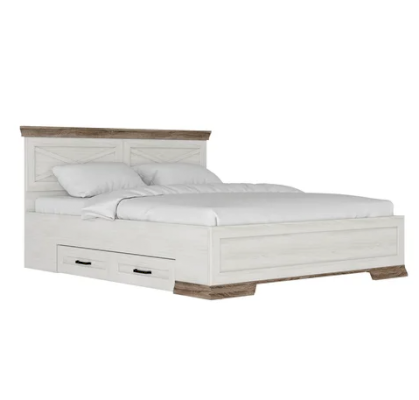 Наличие двух выдвижных ящиков в корпусе кровати решит проблему эффективной системы хранения.