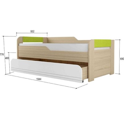 ШхГхВ 2044 x 932 x 800 мм - спальное место: 900х2000 мм