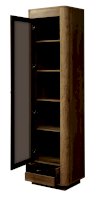 Высокий и изящный шкаф-витрина отлично впишется в интерьер гостиной или столовой. Он неслучайно называется витрина, потому что его главная задача – продемонстрировать свой внутренний мир. Фасад представляет собой рамочную конструкцию со стеклом. Внутри – пять одинаковых по высоте полок из ЛДСП, каждая из которых выдерживает вес до 5 кг. Здесь будет хорошо смотреться посуда. Если поставить такой шкаф в кабинет или детскую комнату, в него поместится небольшая библиотека.