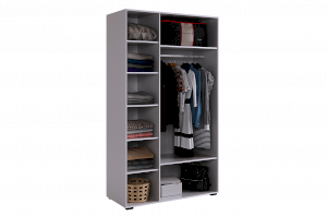 Внутреннее наполнение шкафа состоит из двух секций. Первая секция оснащена штангой и двумя полками, чтобы вы могли удобно разместить свою одежду. Вторая секция предлагает пять полок для хранения различных предметов. Важно отметить, что наше изделие обеспечивает бесшумное закрывание фасадов, что поможет Вам избежать неприятных звуков при использовании шкафа.