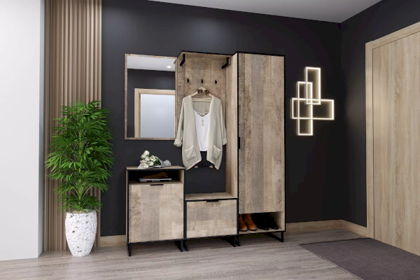 Тумба представлена в двух цветах – Дуб Гранж Песочный и Дуб Самдал. Она оснащена дверкой с газлифтом, который фиксирует ее в открытом положении для комфортной эксплуатации, а высокие опоры обеспечивают быстрый и практичный доступ при уборке. Дополните тумбу шкафом для одежды из одноименной коллекции, чтобы оптимизировать место для хранения в прихожей и создать особо гармоничную атмосферу.