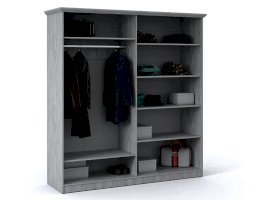 Распашной четырехдверный шкаф выполнен в популярном стиле неоклассика – белые рамочные фасады с фактурой и рисунком натурального дерева, декоративные крестообразные накладки, фигурные ножки и карниз все это придает комнате элегантный и светлый вид. Вместительные отделения со штангой и полками поместит в себя верхнюю одежду, коробки с обувью и головные уборы. Мебель выполнена из экологичных материалов.