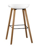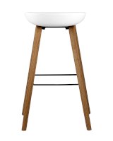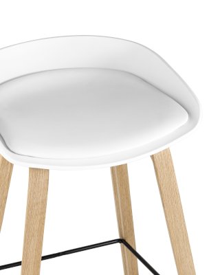Барный стул Libra Soft белого цвета создан из пластика и дерева. Гармоничное сочетание этих материалов – основа интерьеров в стиле лофт, минимализм и других современных направлений. Модель выглядит очень элегантно и лаконично, благодаря четким геометрическим формам, отсутствию подлокотников и полноценной спинки. Высота изделия соответствует стандартной барной стойке и составляет 75 см.