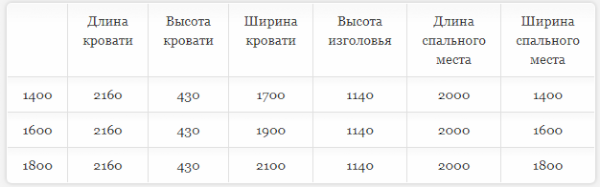 Кровать доступна в трех размерах:  1400, 1600 и 1800 мм.