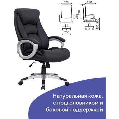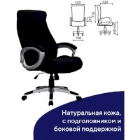 Обивка внешней поверхности кресла выполнена из натуральной кожи - классического материала премиум класса. На нерабочих поверхностях применяется материал-компаньон - экокожа.