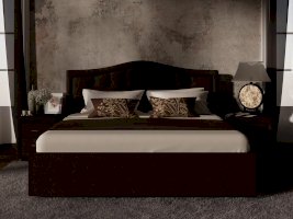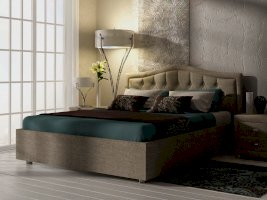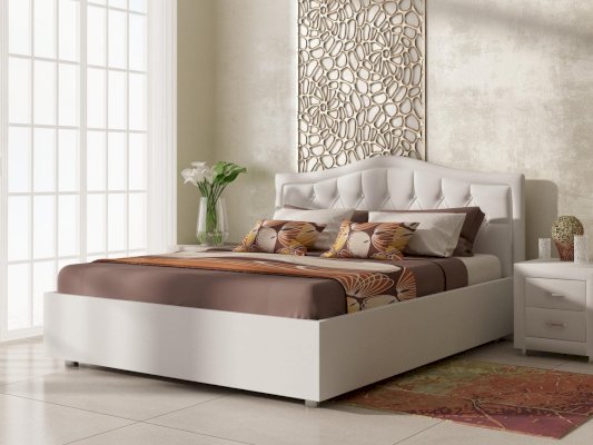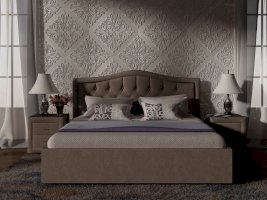 Элегантная интерьерная кровать с изголовьем, украшенным декоративными пуговицами, которые можно заменить на стразы. Модель изготовлена из ДСП. Обратная сторона изголовья обита спандбондом, но, при желании, её можно выполнить из основного обивочного материала.