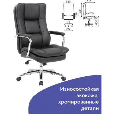 Плотная многослойная набивка, продуманная форма спинки, широкий подголовник, хромированные подлокотники с мягкими накладками создают максимально комфортные условия для продуктивной работы.