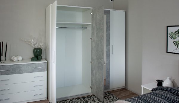 Классический распашной четырехдверный шкаф выполнен в стиле минимализм: строгие линии, идеальные пропорции. Нейтральные цвета шкафа подойдут для любого стиля интерьера, их можно сочетать со множеством ярких и насыщенных оттенков тем самым полностью преображая пространство. Зеркала на центральных фасадах сделают спальню светлее и просторнее. Идеально компонуется со всеми модулями системы Аврора. Мебель выполнена из высококачественных материалов.