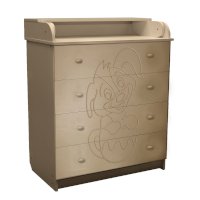 Вам понравится привлекательный внешний вид детского комода. На его лицевой части вы увидите углубленный декор в виде Собаки в чашке.