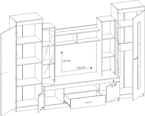 Размер ниши под ТВ (ШхВ): 1050х750 мм